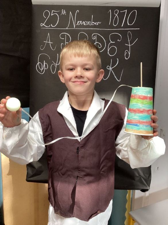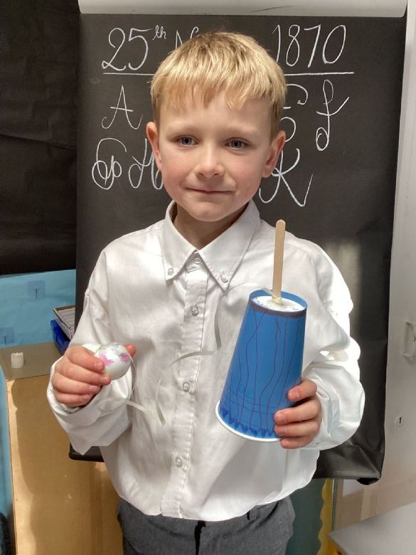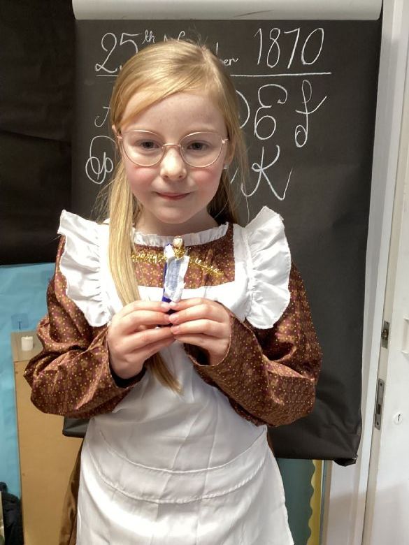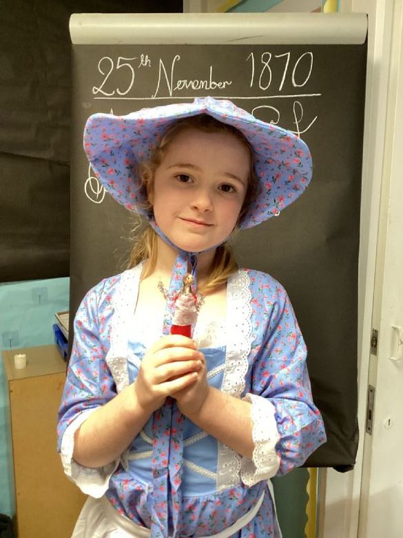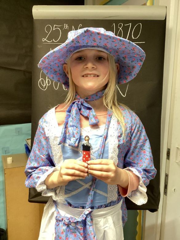 Eagles Class spent the day learning all about what a typical school day was like for a Victorian Child. They worked in cold and dark conditions, learning letters, numbers and poetry by rote and copying on slates in chalk. Children who disobeyed the rules were given the cane as punishment, and children not working hard enough or making mistakes were made to stand in the corner and wear the dunce hat. The girls sat at the back to learn skills for when they become mothers, and the boys were at the front learning the 3 R's: Reading, Writing and Arithmetic along with History, Geography and woodwork. The children participated in drills outside in line for Physical Education. In the afternoon, the children learnt all about the toys Victorian children played with, and the girls made peg dolls and the boys made a cup and ball toy.